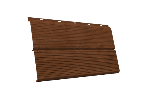 - При использовании покрытия Colority® Print, «ЭкоБрус GL» достигает максимального сходства с клееным брусом. Надежное скрытое сцепление панелей придает фасаду здания естественный вид.